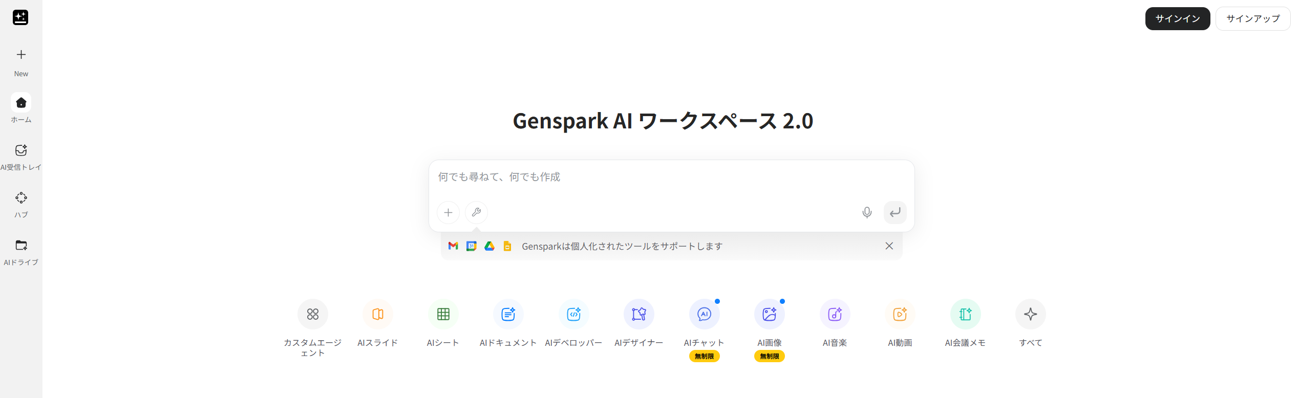 Gensparkは、上記2つと比べると利用者は少ないですが、性能は非常に良いものになります。