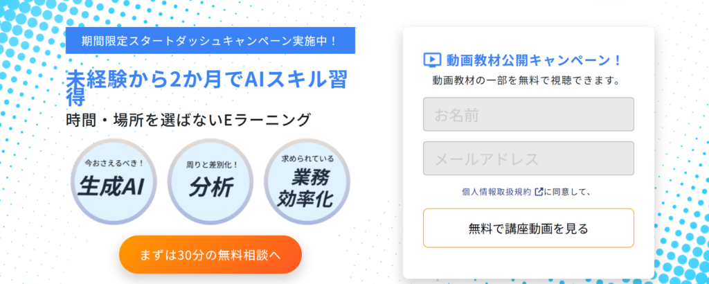 無理なくスキルアップしながら、仕事で活かせるAI活用力を身につけたい方におすすめです。