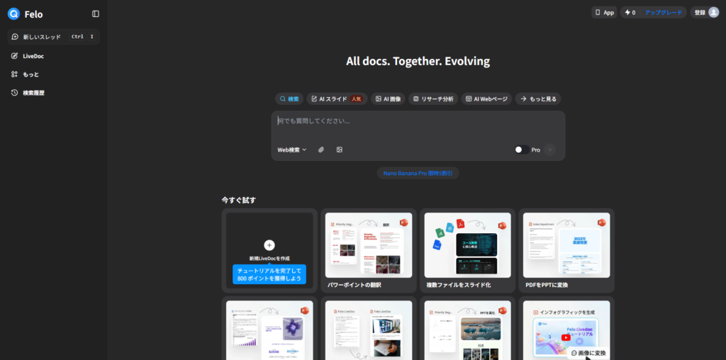 また、Feloでは検索結果を元にマインドマップや、スライド資料まで自動で生成してくれます。スライドの内容は自身で編集することも可能です。